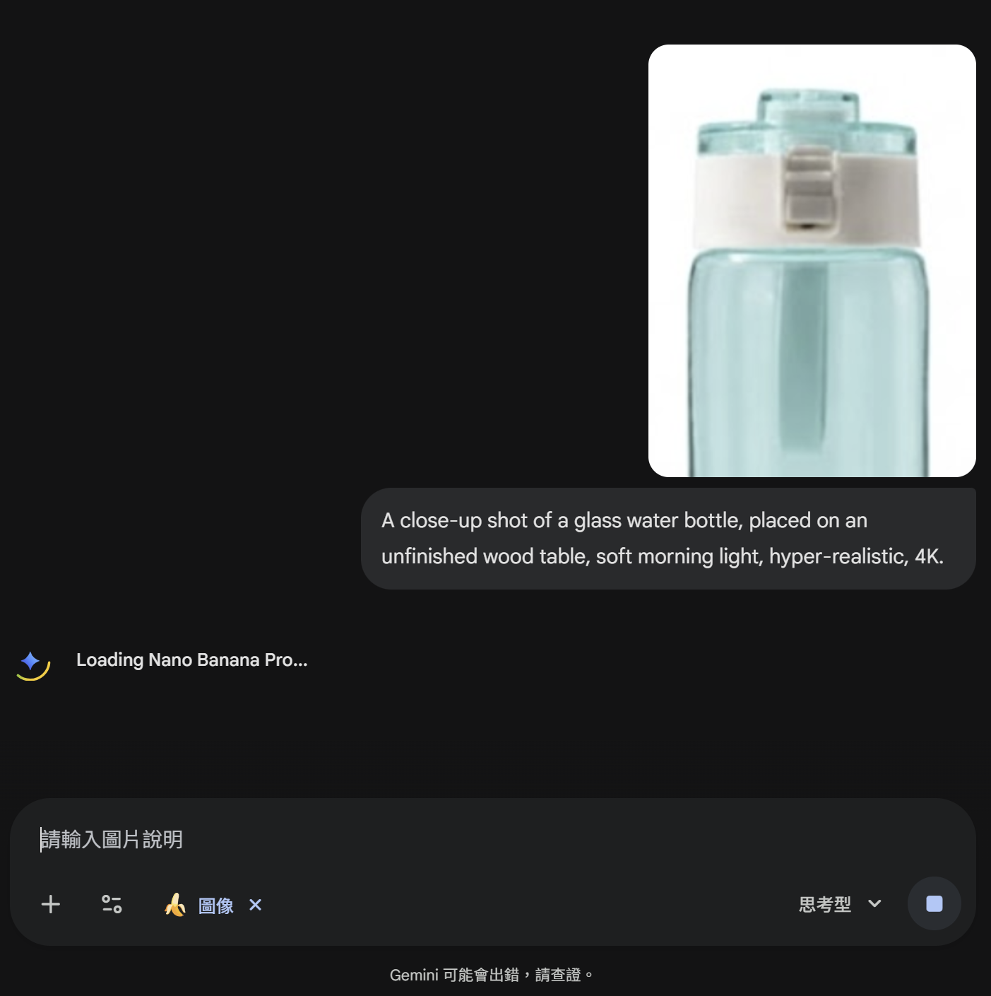 Step 4.開始生成:點選功能列表的「建立圖像」功能、並確認模型為思考型。傳送Prompt,等待AI生成,依照指令複雜程度可能需要幾分鐘到數十分鐘的時間。