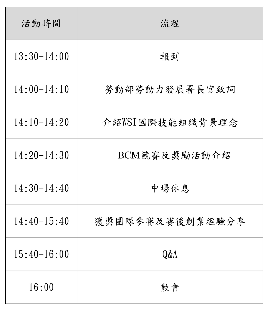 想要參加BCM,想要拿獎金,請先來參加活動說明會吧!請至https://tinyurl.com/2yf7rotw報名,相關活動訊息請參見社會經濟入口網https://se.wda.gov.tw/。